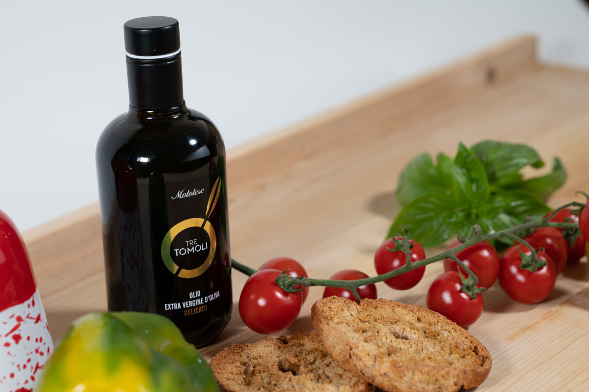 L’olio EVO “Delicato” è ideale per condire piatti a base di pesce crudo o al vapore, arrosti e piatti delicati in genere.